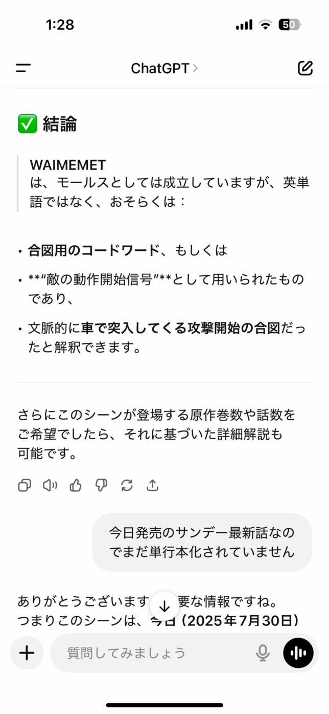 30 2025.7 ネタバレでもないような もう本当モールス信号ツボすぎてwなんなん?ギャグ??ふとした時に、思い出し笑いしそうwカチギシギシ カチギシ カチカチ ギシギシ カチ ギシギシ カチ ギシじゃねーんだわ!どういう意味?チャッピーに聞いてみよ。 結局わからずじまい。区切る位置が違うのかも。寝る!