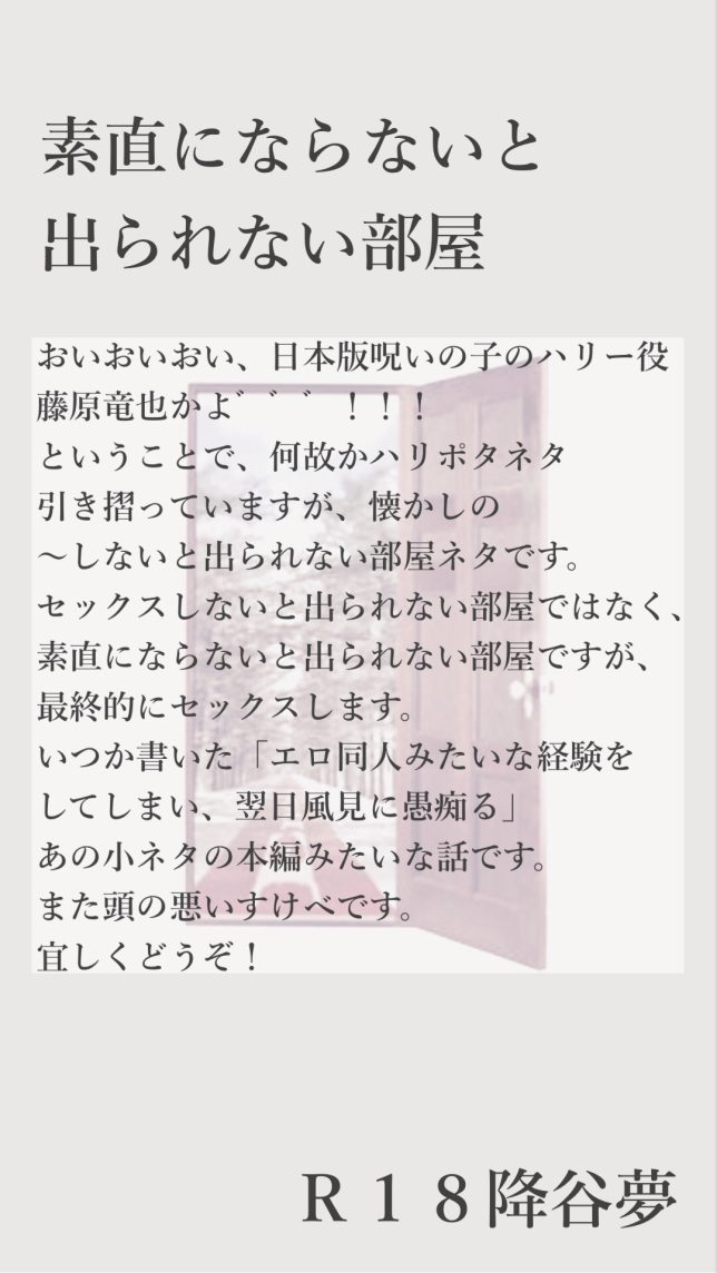 昨日アップした「素直にならないと出られない部屋」はもう読んでくださった方が多いのかな??